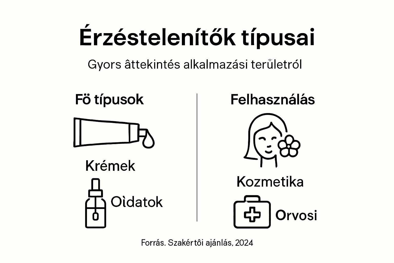 | Amid-származék | Lidokain | Közepes (5-10 perc) | Kozmetika, tartósabb érzéstelenítés |